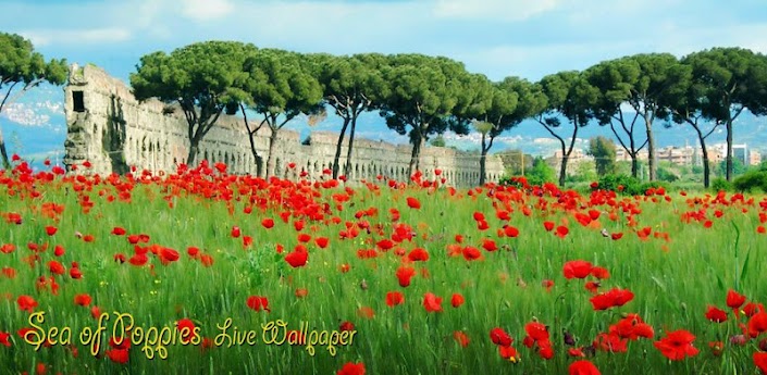 This live wallpaper showing a calm sea of beatiful red swaying poppies.